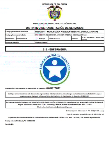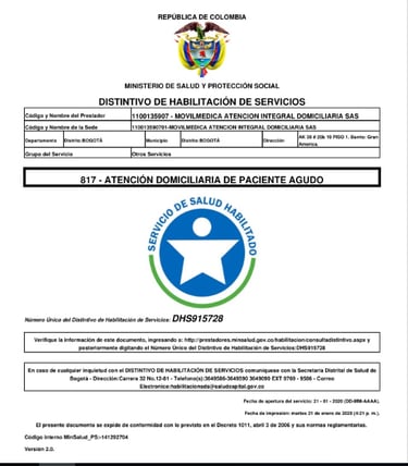Movilmedica es una IPS dedicada al cuidado integral de las personas por medio de servicios de salud extramurales y domiciliarios, confiables y humanizados, orientados a mejorar la calidad de vida y optimizar el uso de los servicios de salud.
